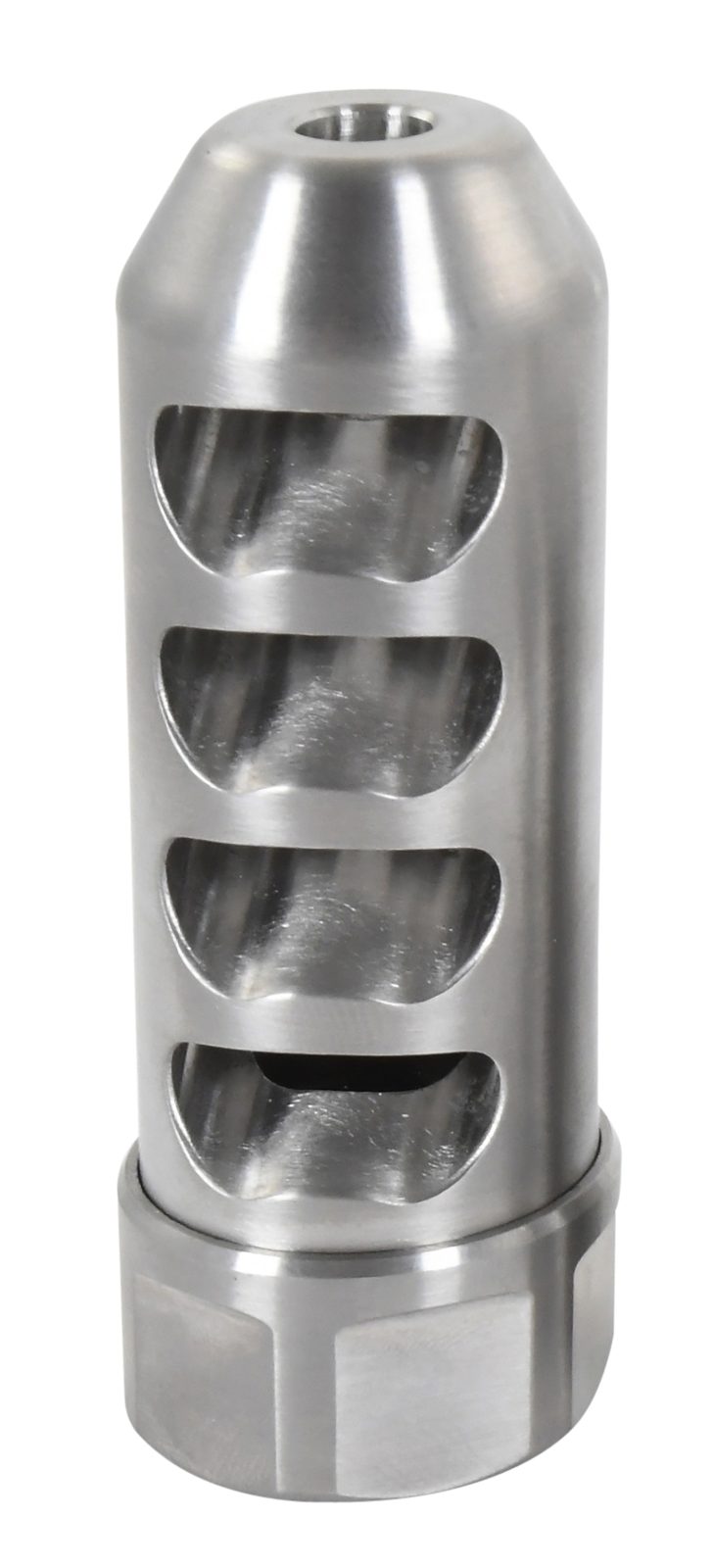 American Precision Arms G2F5838S Gen 2 Fat Bastard Self Timing Brake Stainless Steel with 5/8″-24 tpi Threads, 3.30″ OAL & 1.115″ Diameter for 338 Cal Rifle