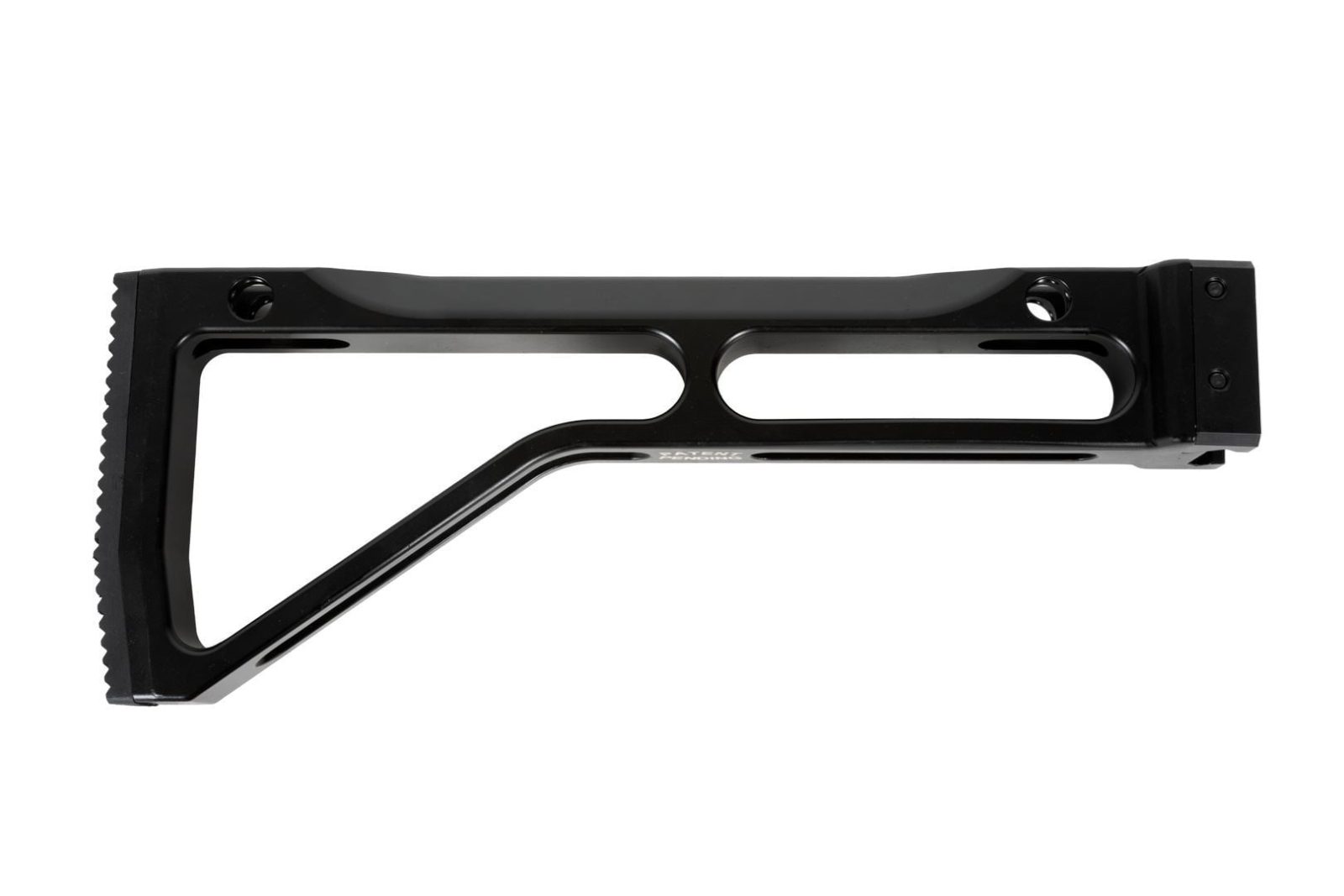 The buttstock body is CNC machined from a single piece of aluminum. The stock has a cheek weld groove machined on both sides for an ambidextrous fit. All the parts are CNC machined in house to ensure consistency. This attention to detail and the manufacturing of these parts in house has produced a high quality stock with tight tolerances that’s built to last.