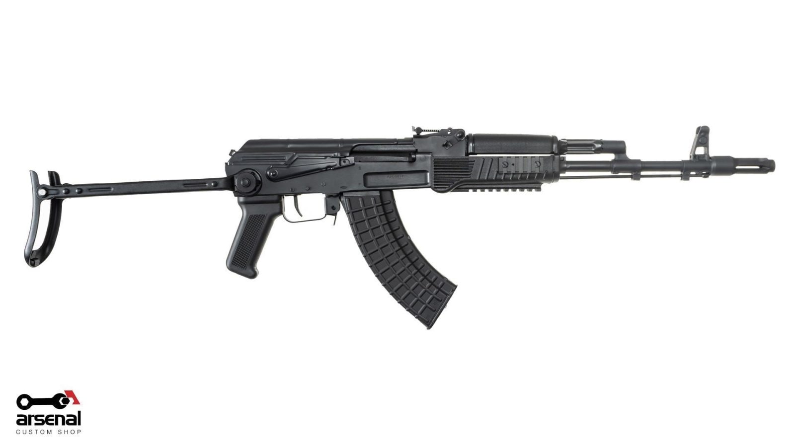 Limited Edition SAS M-7 Semi-Auto Under-folder 7.62x39mm Arsenal Black Cerakote Rifle. Includes AK-022BMR3 Picatinny Rail Lower Handguard & matching 30rd M-47W magazine. Only 100 produced.