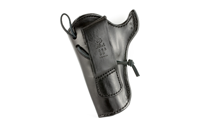 The style 083 is an authentic replica of the 1800’s gentleman’s holster. It is right at home riding on their popular Desperado(TM) Gun Belt, style B37, or on your favorite western belt. It is designed to be worn on the weak side cross draw. Available in black or tan lined leather. Accommodates Colt SAA 3 1/2″ or 4 3/4″. Accommodates belts up to 2 1/4″ wide.
