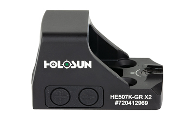 The HE507K-GR X2 is an open reflex optical sight designed for subcompact pistol applications. The HE507K-GR X2 improves on the previous version by adding Lock Mode, which was first introduced in their 2018 LEM pistol optic models. Lock Mode, when activated, locks the buttons preventing inadvertent setting changes. Additional features include Holosun’s Green Super LED with up to 50k hour battery life, Multi-Reticle System, and Shake Awake. The durable housing is made from 7075 Aluminum, uses Holosun’s K footprint, and houses the 1632 battery in a side-mounted tray for easy replacement when needed.